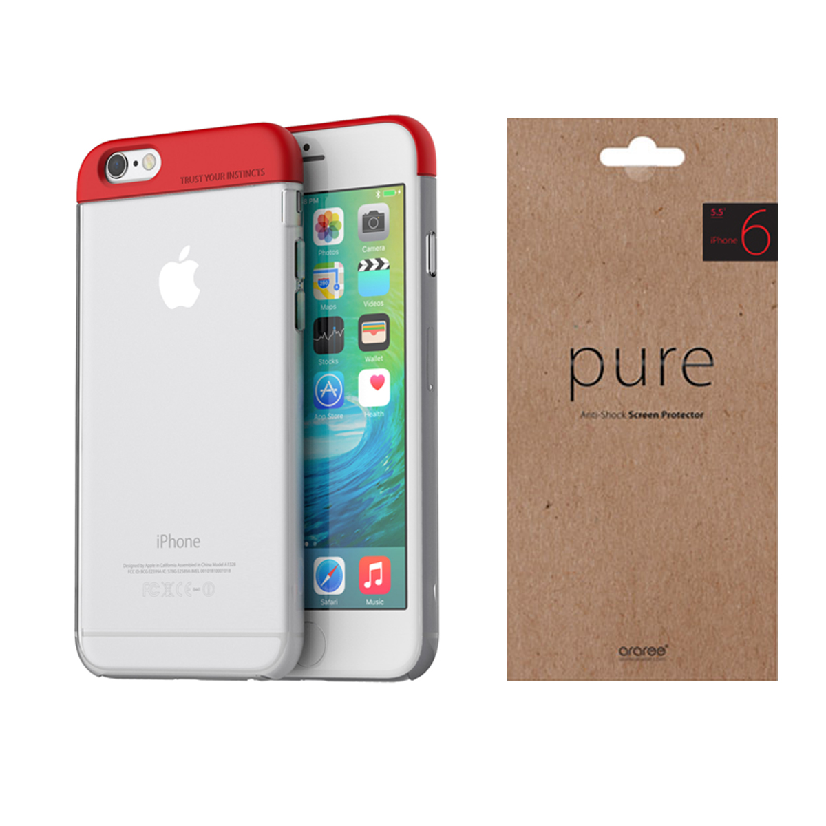 iPhone 6S Case Screen Protector Film Package Araree Pure Pops Red for Apple